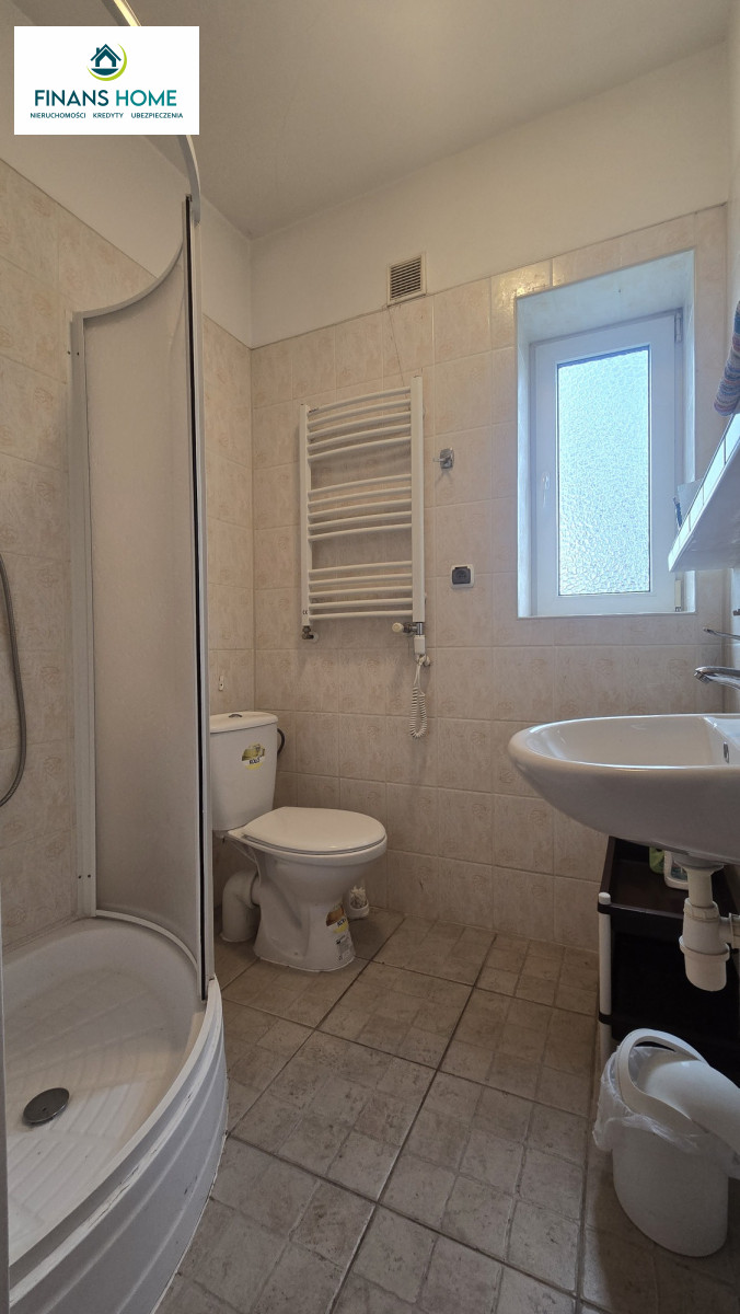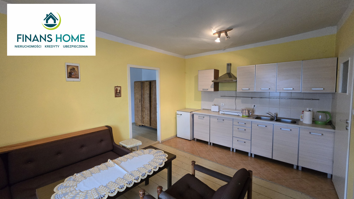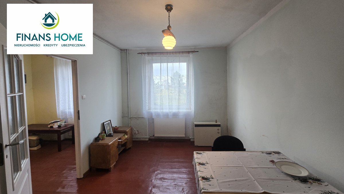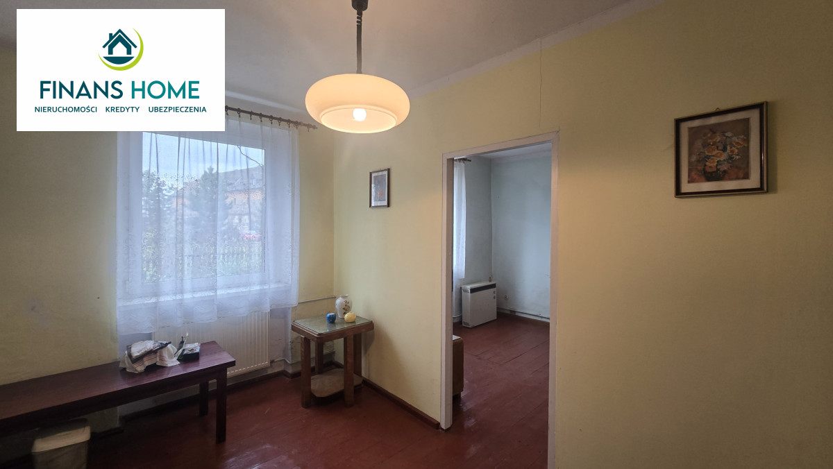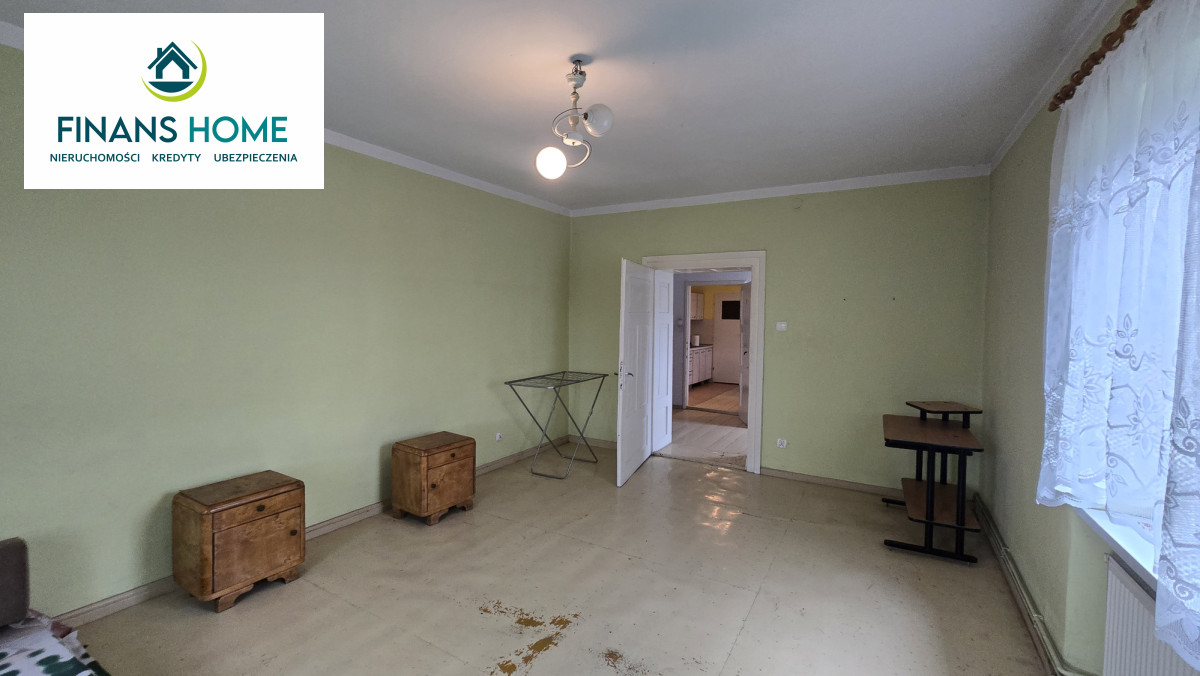 Na parterze znajduje się ganek, wspólna klatka schodowa, 2 pokoje, pomieszczenie gospodarcze, pralnia i kotłownia. Na piętrze dwa pokoje, kuchnia, łazienka oraz niezależny pokój z łazienką. Nieruchomość wymaga remontu. Budynek podzielony jest pionowo (tył/przód) pomiędzy 2 właścicieli.