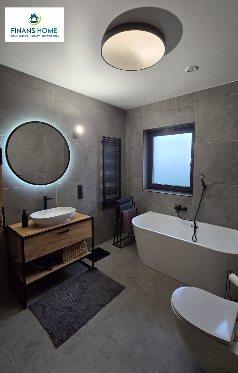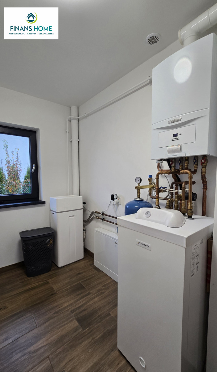 Nieruchomość wybudowana w 2022r. w technologii tradycyjnej z wysokiej jakości materiałów, ocieplona styropianem. Dach pokryty dachówką. Budynek ogrzewany ekonomicznym piecem gazowym renomowanej firmy Vaillant z zamkniętą komorą spalania. Wykonana instalacja ogrzewania podłogowego. Zamontowany zasobnik ciepłej wody użytkowej oraz filtr wody.