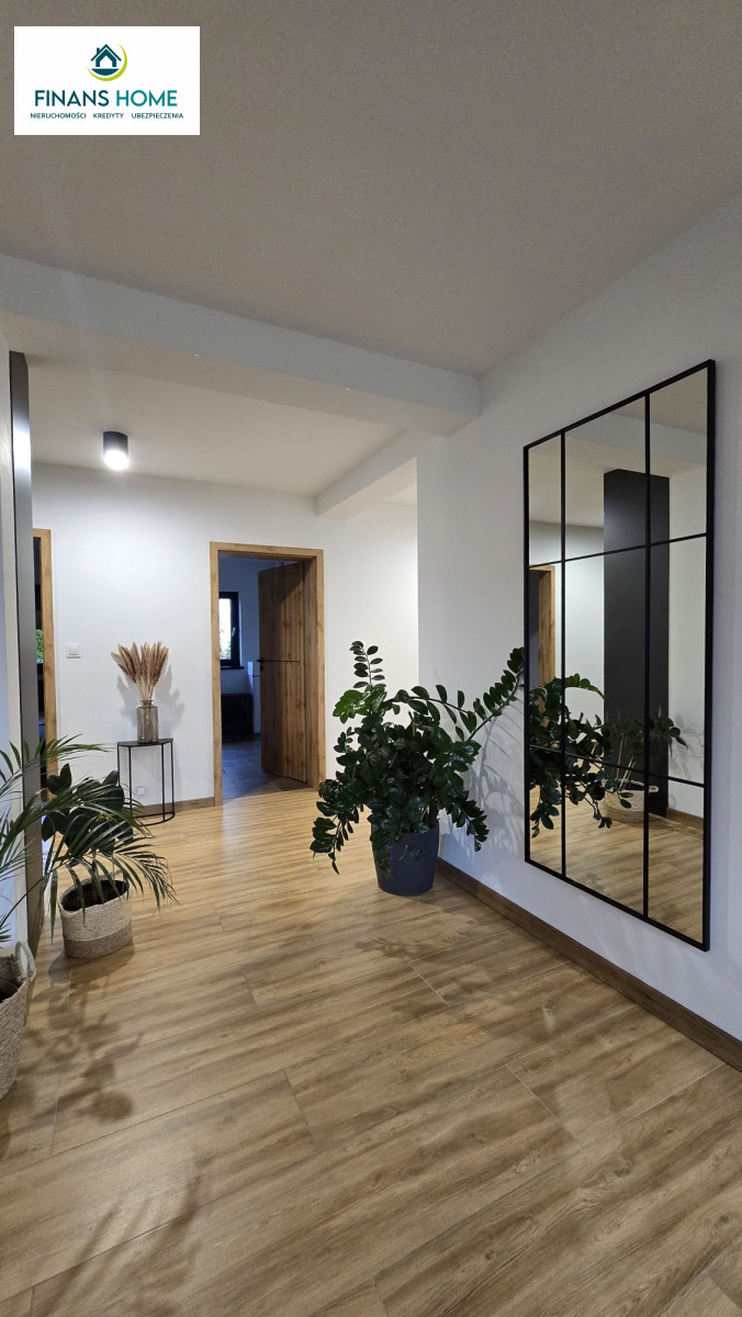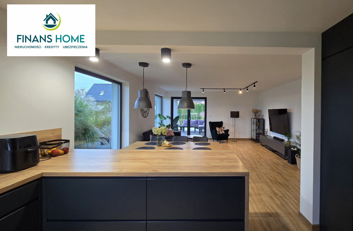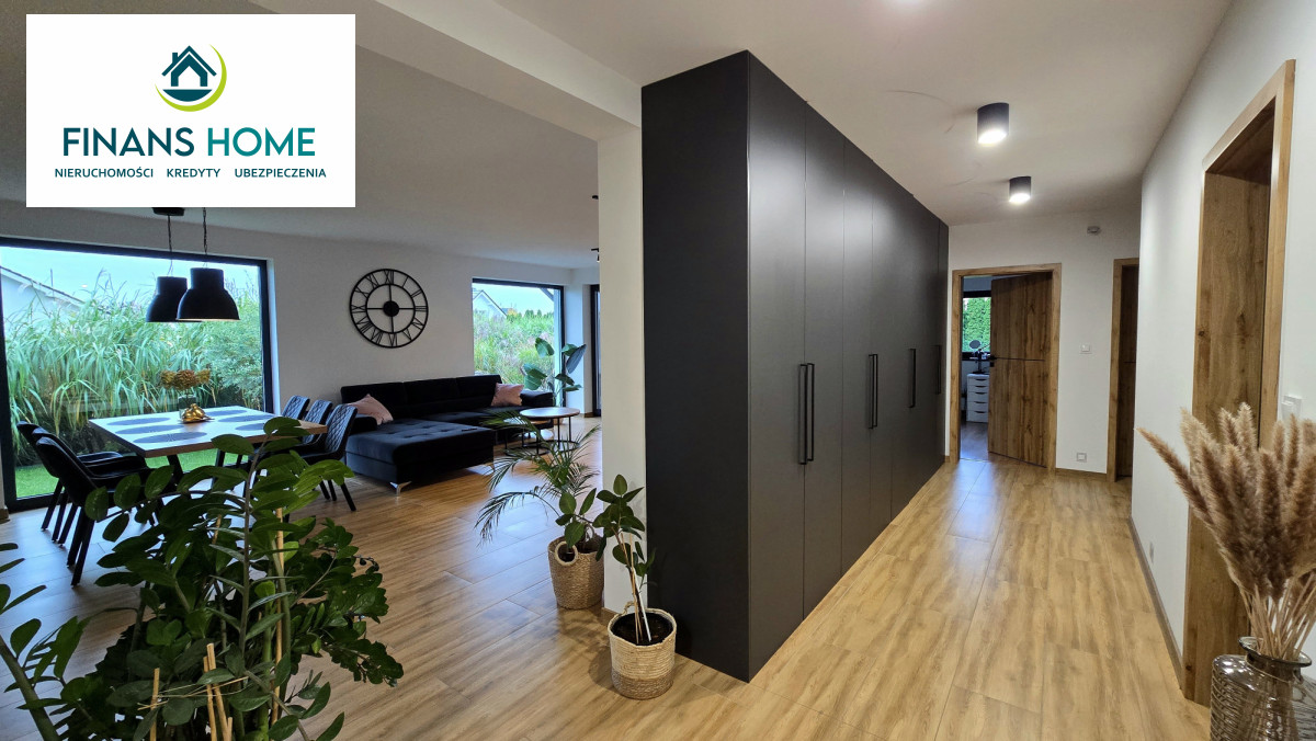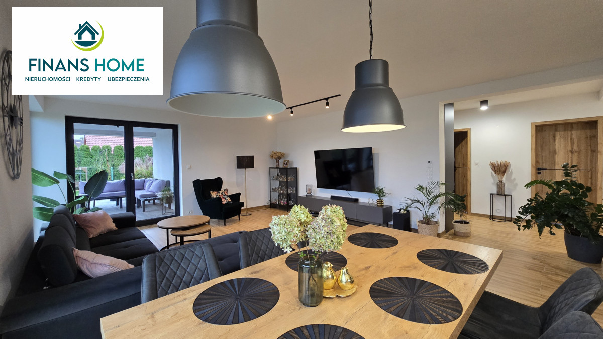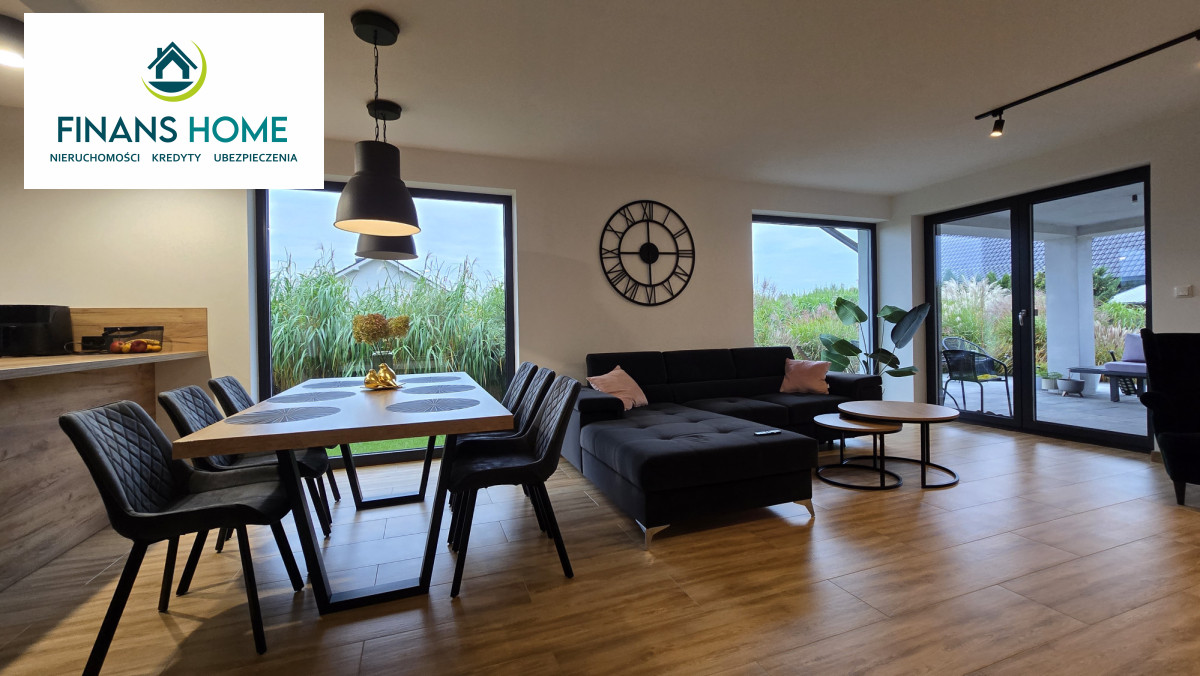 Nieruchomość posiada 145,52 m2 powierzchni użytkowej i składa się z przedpokoju, otwartej kuchni, salonu z wyjściem na taras, 3 pokoi i łazienki. W bryle budynku znajduje się również garaż jednostanowiskowy i kotłownia.