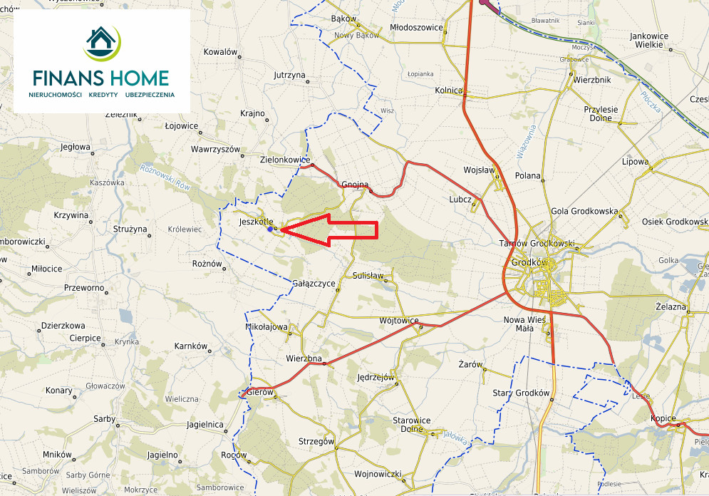 Na sprzedaż działka budowlana o powierzchni 3200 m2 położona w Jeszkotlach, 14 km od Grodkowa, woj. opolskie.