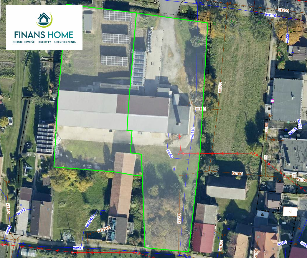 Przed budynkiem położona trzystanowiskowa, duża wiata. Na dachu wiaty oraz na gruncie obok budynku znajduje się instalacja fotowoltaiczna o mocy 40 kW, która pozwala znacznie obniżyć koszty energii elektrycznej. Doprowadzone media prąd, woda i kanalizacja.